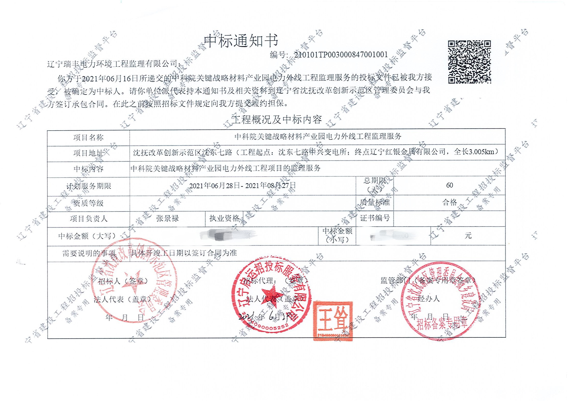 中標喜訊-中科院關鍵戰(zhàn)略材料產業(yè)園電力外線工程監(jiān)理服務