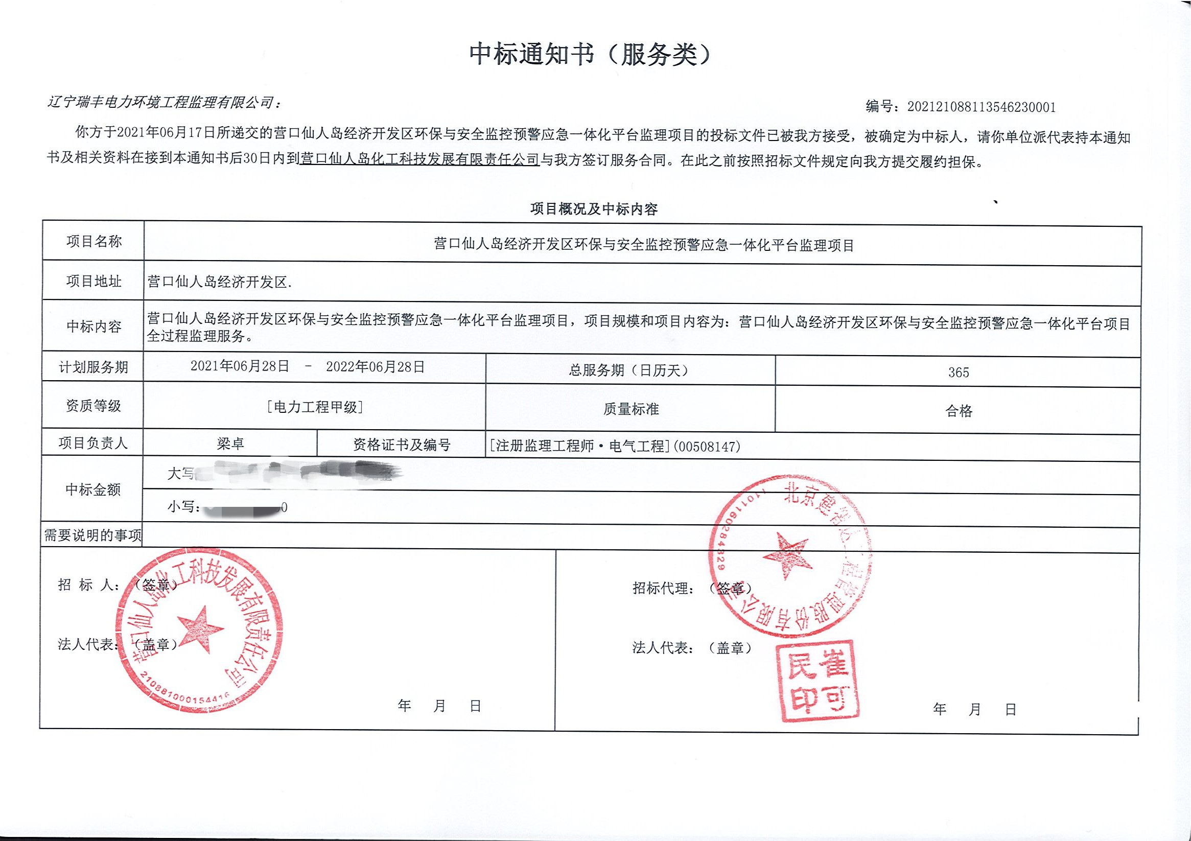 中標(biāo)喜訊-營口仙人島經(jīng)濟(jì)開發(fā)區(qū)環(huán)保與安全監(jiān)控預(yù)警應(yīng)急一體化平臺(tái)監(jiān)理項(xiàng)目