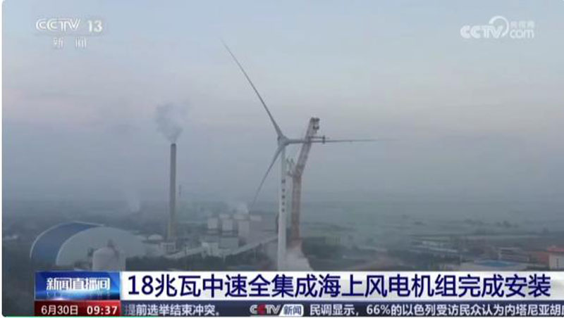 項目安裝全球首臺下線的18兆瓦海上風(fēng)電機組,風(fēng)電機組輪轂中心高度145米,葉輪直徑260米,機艙凈重約500噸,機組整機國產(chǎn)化率高達99%。