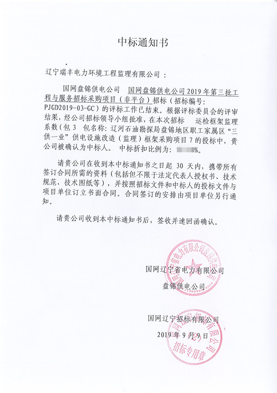 中標喜訊-遼河石油勘探局盤錦地區(qū)職工家屬區(qū)“三供一業(yè)”供電設(shè)施改造(監(jiān)理)框架